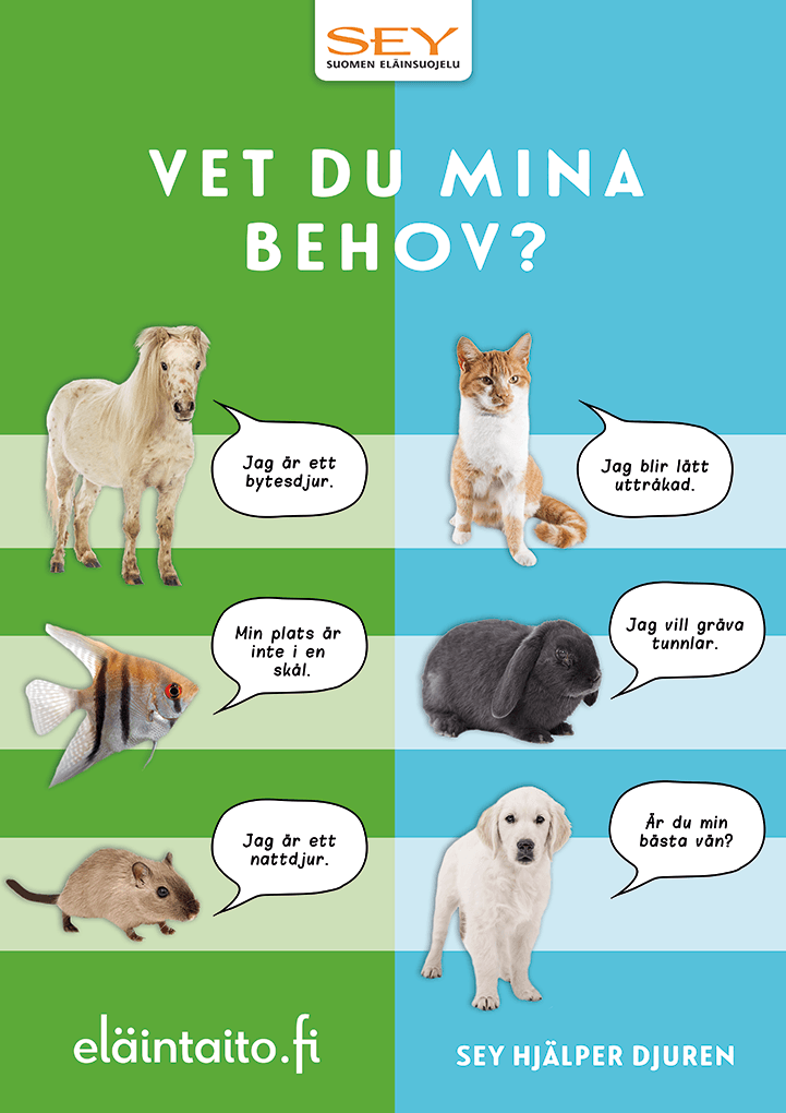 Tänä vuonna SEYn Eläinten viikon teemana on vastuullinen lemmikin omistajuus ja hankinta. Eläinten viikolla pohditaan, minkälaisen elämän minä pystyn tarjoamaan lemmikille. Mitä kaikkea on otettava huomioon ennen kuin on valmis hankkimaan eläimen ja hoitamaan sitä hyvin? Mistä lemmikin voi hankkia vastuullisesti? Entä mitä vaihtoehtoja eläinrakkaalla ihmisellä on lemmikin omistamisen sijaan? SEY haluaa muistuttaa Eläinten viikolla lemmikkien hyvästä kohtelusta ja eläinsuojelun tärkeydestä lasten ja nuorten arjessa. Vuorovaikutuksessa eläinten kanssa tarvitaan tunteen lisäksi tietoa.