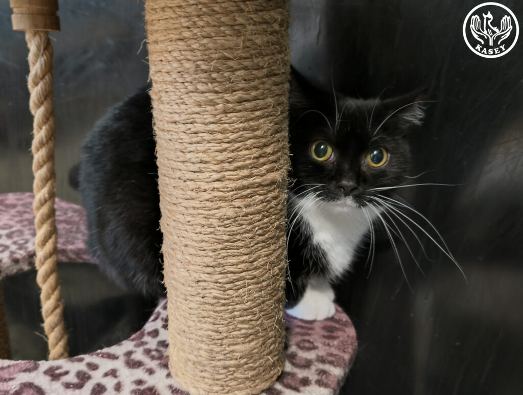 Olen Öyskä, vielä varautunut kissaneiti. En ole elämäni aikana ollut paljoa ihmisten kanssa tekemisissä, joten pelkään teitä vielä aika paljon ja pelästyessäni saatan räpätä. Olen kuitenkin leikkisä, ja etsin kotia jossa minulle olisi kiva kissakaveri näyttämässä esimerkkiä. Olen elänyt alkuelämäni kissapopulaatiossa ja olen siis tottunut kissakavereiden seuraan. En sovellu pienten lasten perheeseen. Olen FIV/FeLV negatiivinen. Olen nähtävillä sijaiskodissa Lappeenrannassa ja lisätietoja minusta antaa sijaiskotivastaava Pirjo Granbäck p. 045 694 9597.